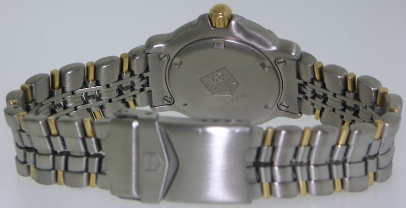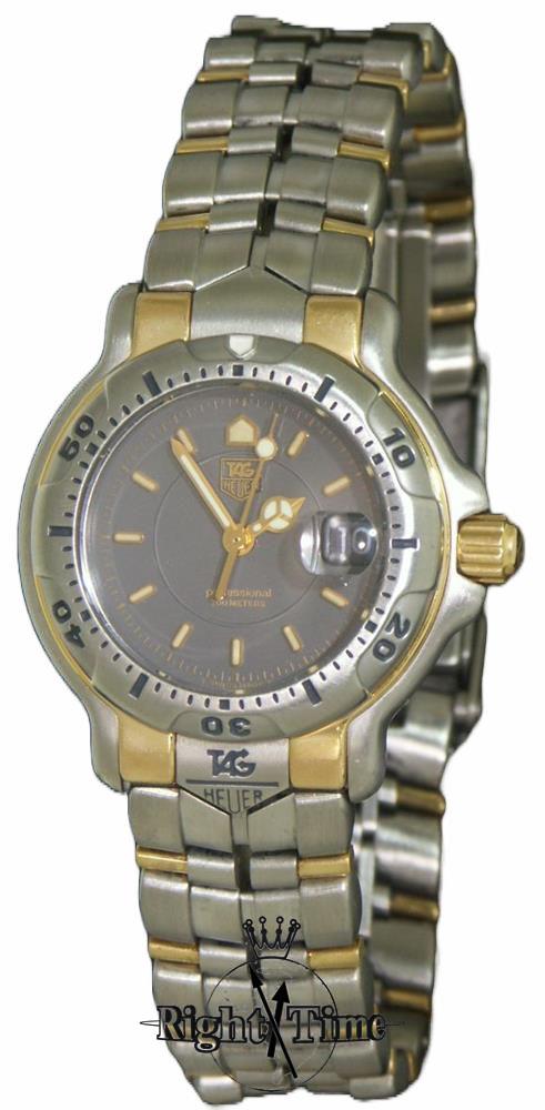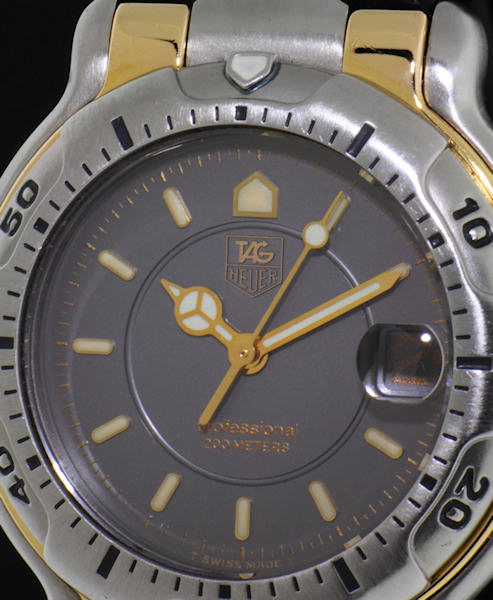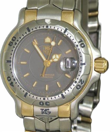 Tag Heuer elegant, dress sport model "6000" WH 1352 with solid 18kt yellow gold lug tops and under bezel insert over the steel case, steel and 18kt gold bracelet, gray dial