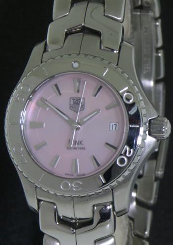 Tag Heuer all polished stainless steel case and bracelet "Link" ladies WJ1315.BA0573 model with pink Mother-of-Pearl dial and steel polished applied markers