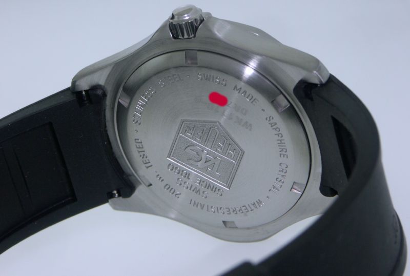 Tag Heuer diver collection "2000" Swiss made quartz model WK1110.FT8002 featuring all black dial, luminous filled marker cups, sapphire crystal, genuine Tag Heuer fitted rubber strap