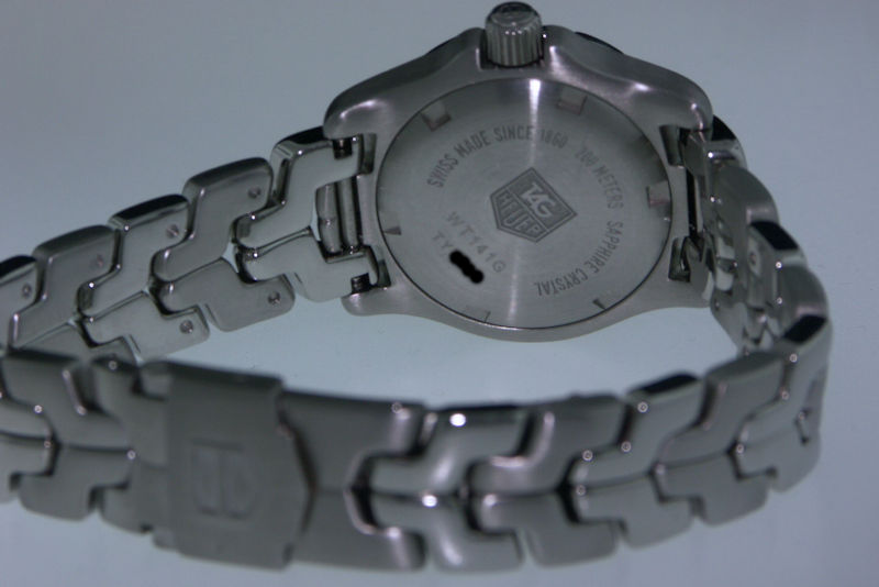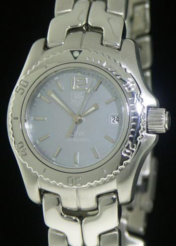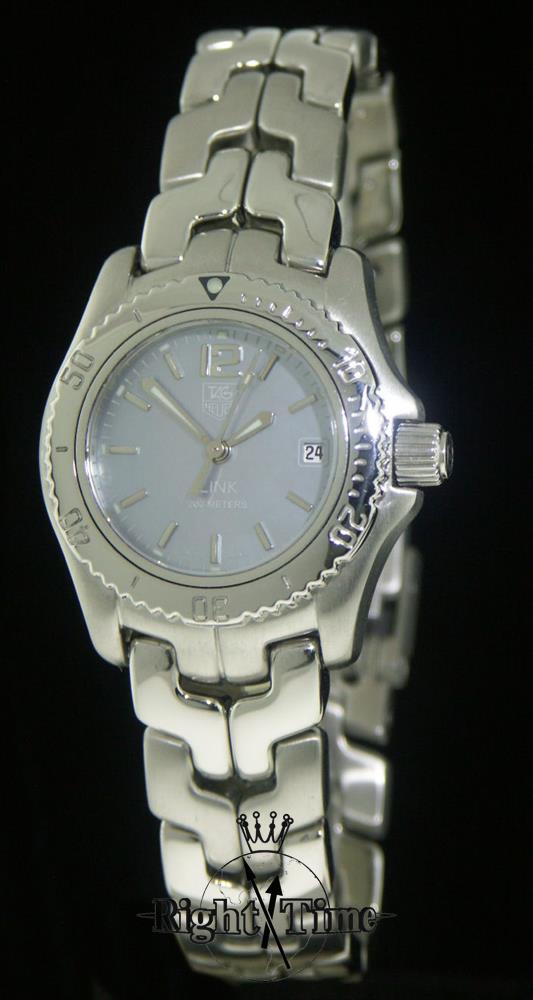 Tag Heuer Link model WT141G. Swiss made Quartz analog movement. Solid stainless steel case and bracelet. Blue genuine mother-of-pearl dial with steel tone hands and markers. Scratch resistant sapphire crystal.
