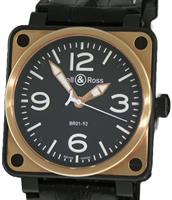 Bell & Ross BR 01-02 aviation watch. Combination black PVD coated stainless steel and 18KT rose gold case. Black dial with rose tone hands and luminous markers/numerals. Swiss made ETA automatic movement. Comes on a black genuine horn-back alligator by Aaron Bespoke, Montreal custom made strap with white stitch.