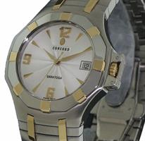Concord Saratoga Watch 15.C2.1894. Solid stainless steel and 18kt yellow gold case and bracelet. White textured dial with date. Quartz movement.