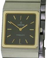 Concord Mariner model 0320266. Combination finish stainless steel case and bracelet. Swiss made automatic movement. Silver dial with horizontal design and polished steel tone hands and markers. Stainless steel caseback with observation crystal.