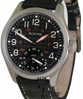 Glycine KMU 48 Limited Edition 2009. ETA 6498-1 manual winding movement with 17 jewels. Large 48mm stainless steel case with a satin finish. Black carbon fiber dial with Arabic luminous numbers. Glycine logo on crown. K1 mineral glass crystal. Comes with one black leather strap and one tan leather strap. Individually numbered.
