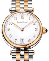 Louis Erard Romance model 10800AB40.BMA26. Swiss made quartz analog movement with date function. Stainless steel case and bracelet with rose gold plated accents. White dial with rose color hands and Arabic numerals. Sapphire crystal.