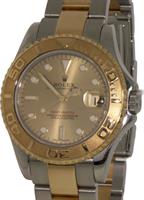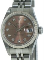 Rolex lady Datejust model 69138. Swiss made Rolex Caliber 2135 automatic movement with COSC chronometer certification. Solid 18kt yellow gold case and bracelet. Genuine diamond bezel. Champagne color dial with genuine diamond markers. Raised sapphire crystal with bubble date magnifier.