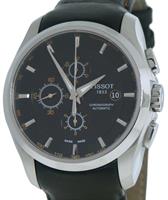 Tissot T-Sport PRC200 T055.427.16.057.00 automatic model. Stainless steel case on black leather strap. Lemania based 15 jewels automatic chronograph movement by Tissot. Black color dial with date calendar. Sapphire crystal. Water resistant to 200 meters.