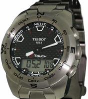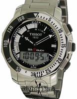Tissot Sea-Touch Diver model T026.420.11.051.01. Features compass, thermometer, second time zone, alarm, stopwatch, dive assistant, and logbook. Solid stainless steel case and bezel. Sapphire crystal. Comes on a solid stainless steel bracelet with deployment clasp.