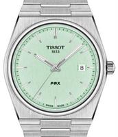 Tissot PRX Powermatic 80 model T137.407.11.351.00. Swiss made automatic movement with date function and up to 80 hour power reserve. Solid stainless steel case and bracelet with a unique tonneau shape. Waffle pattern dial in a gradient ice blue color. Sapphire crystal. Water resistant to 100 meters.