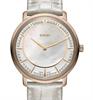 Rado model R14071936 from Rado DiaMaster Thinline Collection. Rose gold plated ceramic and titanium case, Swiss quartz movement, sapphire crystal, white Mother-of-Pearl dial with 48 diamonds, leather band