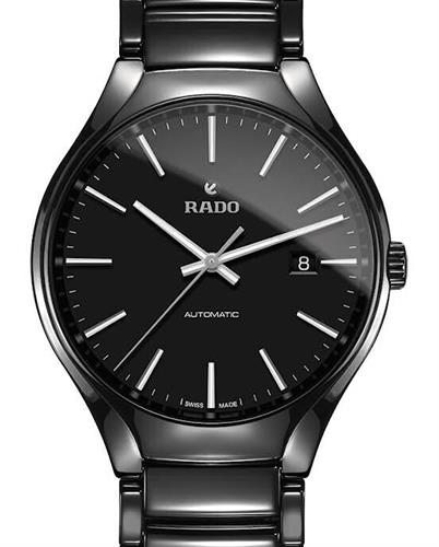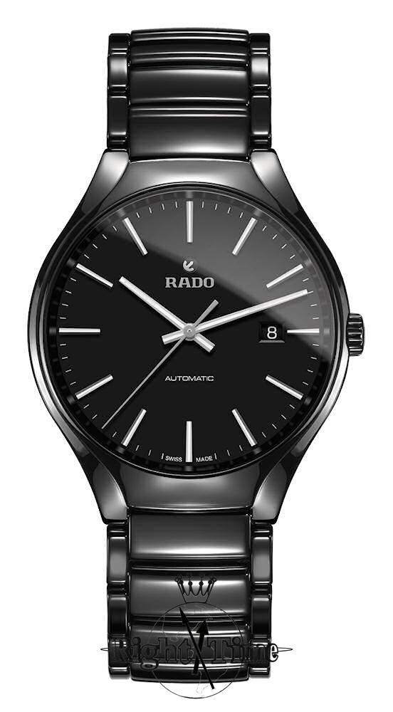 Rado True Automatic collection. High-tech scratch proof black ceramic case and bracelet. Sapphire crystal. Black color dial with silver tone hands and markers. Watch is powered by automatic movement