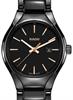 Rado True collection. 30mm High-tech scratch proof black ceramic case and bracelet. Sapphire crystal. Black color dial with rose gold tone hands and markers. Watch is powered by automatic movement