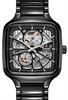Rado True series Square Open-heart model R27086162. Swiss made Rado Caliber C07 skeleton movement with 80 hour power reserve. Square shaped black ceramic case and bracelet. Black dial with open-heart skeleton cut-outs. Sapphire crystal.
