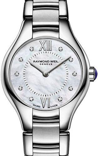 Raymond Weil Noemia model 5124-ST-00985. Quartz movement. Mother-of-Pearl dial with Roman numerals and diamond markers. Sapphire crystal. 24mm stainless steel case with bracelet. 50 meters water resistant.