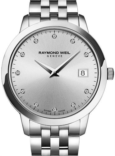 Raymond Weil Toccata model 5388-ST-65081. Swiss quartz movement. Silver dial with date calendar and diamond markers. Sapphire crystal. Stainless steel case and bracelet. 50 meters water resistant.