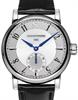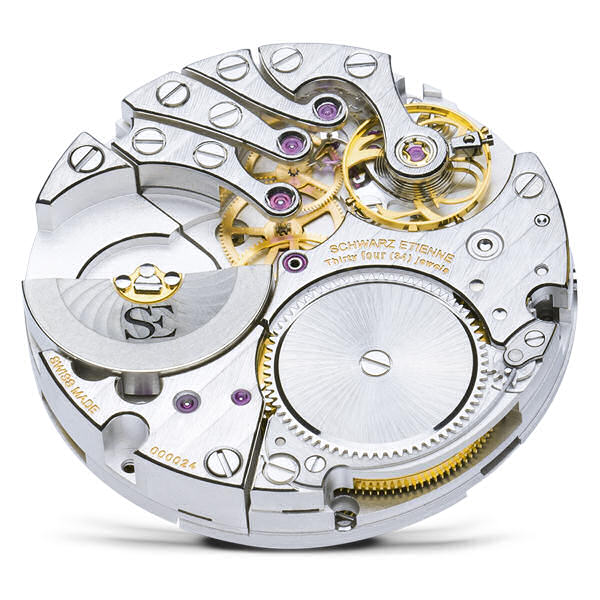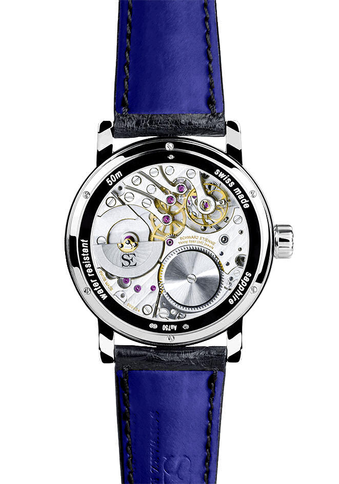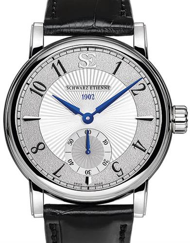 Schwarz Etienne Roma Manufacture Collection. Watch model WRO15MA25SS01AA powered by in-house made ASE 100.00 Automatic movement with micro rotor. Gorgeous contrasting grey and silver textured dial with blue hands, Arabic numerals, and small seconds sub-dial at 6 o`clock.