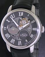 One of the top Swiss true watch manufacturers - Schwartz Etienne introduces the newest addition LA CHAUX-DE-FONDS Flying Tourbillon, finely executed in heavy (150gr) 18kt white gold case with black alligator strap and 18kt white gold deployant clasp. Powered by new fully in-house manufactured 34 jewels micro-rotor driven calibre TSE PSR 121.00 with 80 hour power reserve