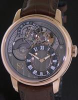 One of the top Swiss true watch manufacturers - Schwartz Etienne introduces their newest addition LA CHAUX-DE-FONDS Petite Seconde retrograde Tourbillon, finely executed in heavy (150gr) 18kt rose gold case with brown alligator strap and 18kt rose gold deployant clasp. Powered by new fully in-house manufactured 40 jewels micro-rotor driven calibre TSE PSR 122.00 with 72 hour power reserve