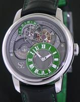 From the top Swiss true watch manufacturers - Schwartz Etienne comes this BaselWorld 2017 new release: green LA CHAUX-DE-FONDS Petite Seconde retrograde Tourbillon in steel case with black and green alligator strap matching Aventurine stone dial on steel deployant clasp. Powered by new fully in-house manufactured 40 jewels micro-rotor driven calibre TSE PSR 122.00 with 72 hour power reserve
