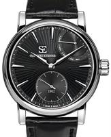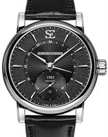 Schwarz Etienne Roma Manufacture Collection. Watch model WRO16MS26SS01AA powered by in-house made MSE 111.00 manual-wind movement with double barrels. Black textured dial with index markers, 4-days power reserve indicator at 2 o`clock, and small seconds sub-dial at 6 o`clock. Steel case with black alligator leather band