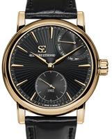 Schwarz Etienne Roma Manufacture Collection. Watch model WRO16MS31RB01AA powered by in-house made MSE 111.00 manual-wind movement with double barrels. Black textured dial with index markers, 4-days power reserve indicator at 2 o`clock, and small seconds sub-dial at 6 o`clock. 18ct solid rose gold case with black alligator leather band