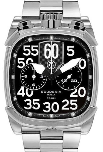 CT Scuderia Scrambler Collection model CS70106. Stainless steel case. Powered by quartz chronograph movement. Black dial with large Arabic numerals. Stainless steel bracelet. Water resistant to 100 meters