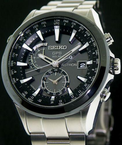 Seiko Astron SAST003. The World`s First GPS Solar Watch. Understands all the 39 official time zones. Accurate time, anywhere on earth. Convenient, simple and elegant. Seiko Cal. 7X52. Titanium case and bracelet. Ceramic bezel.