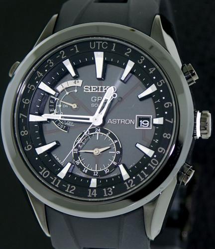 Seiko Astron SAST011. The World`s First GPS Solar Watch. Understands all the 39 official time zones. Accurate time, anywhere on earth. Convenient, simple and elegant. Seiko Cal. 7X52. Black PVD stainless steel case. Ceramic bezel. Black dial with white luminous markers. Black rubber band.
