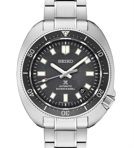 The Naomi Uemura 80th Anniversary. This Prospex diver features the shape and style of the original 6105-811X. The "turtle" shaped case is made of solid stainless steel and features a uni-directional diver bezel with a grey ceramic 0-60 minute insert. The grey dial is complemented by steel tone hands and markers filled with Seiko`s LumiBrite paint. Inside the case sits a Seiko Caliber 8L35 Automatic movement. The watch comes on a bracelet.