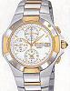 Seiko SNA410 chronograph watch from Seiko Coutura Collection. 100m Water Resistant. SEIKO Japanese Quartz movement with Date calendar, chronograph, Alarm and Second Time Zone functions. Stainless steel case with Cabochon style crown and gold plated accents. White color dial with luminous hands. Stainless steel watch bracelet with gold plated accents.