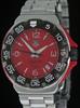 Date calendar, window display. Alarm. 60 min, 60 sec registers chronograph. Second Time Zone indicator.