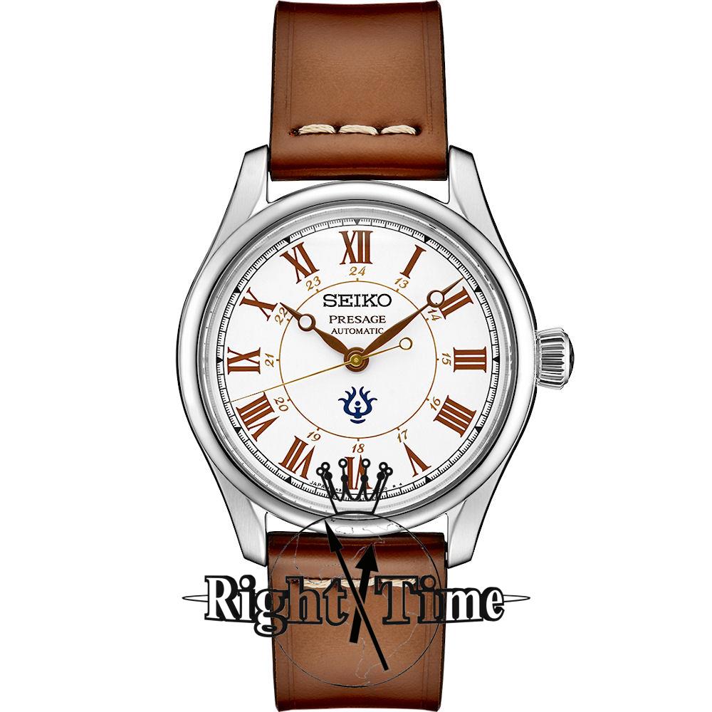 Seiko "Castle in the Sky" model SPB215 automatic wrist watch from Seiko Presage Collection. Limited Edition of 1200 pieces. SEIKO Japanese made Automatic movement Caliber 6R31. Stainless steel case, screw-down observation back. White color dial with Roman numerals. Brown leather band. Water resistant to 100 meters.