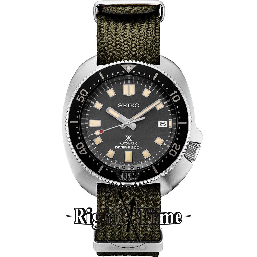 The Naomi Uemura Edition. Solid stainless steel, uni-directional bezel with a black ceramic 0-60 minute insert. The grey dial is complemented by steel tone hands and markers filled with Seiko`s LumiBrite paint. Inside the case sits a Seiko Caliber 6R35 Automatic movement. The watch comes with 2 NATO style nylon straps.