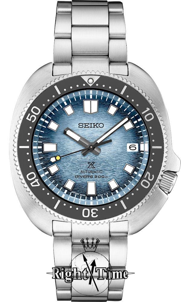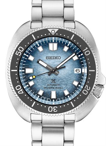 Seiko US Special Edition Ice Diver model SPB263 automatic wrist watch from Seiko Prospex Collection. SEIKO Japanese made Automatic movement Caliber 6R35. Stainless steel case, screw-down crown. Gradient blue dial with "ice texture" and date calendar. Bracelet. Water resistant to 200 meters.