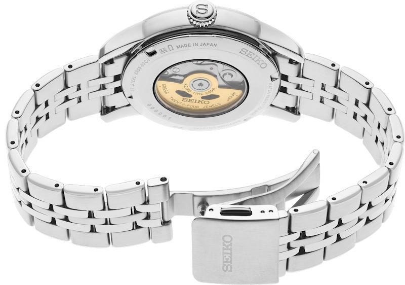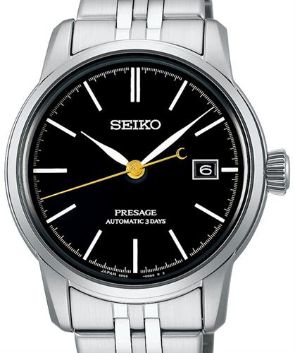 Seiko Presage Craftsmanship series model SPB405. Japanese Seiko Caliber 6R55 automatic movement. Solid stainless steel case and bracelet. Black urushi lacquer dial with white hands and markers. Sapphire crystal with anti-glare treatment. Water resistant to 100 meters.
