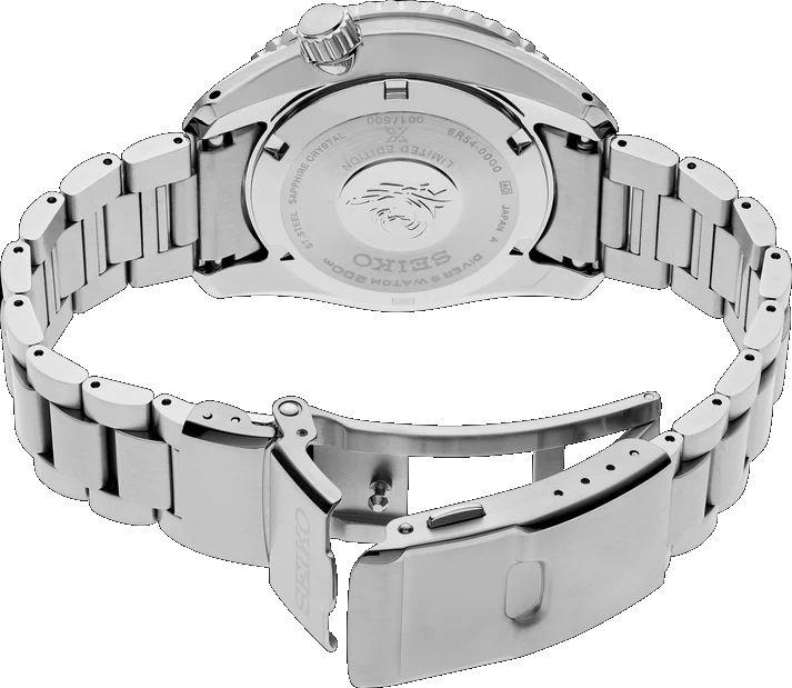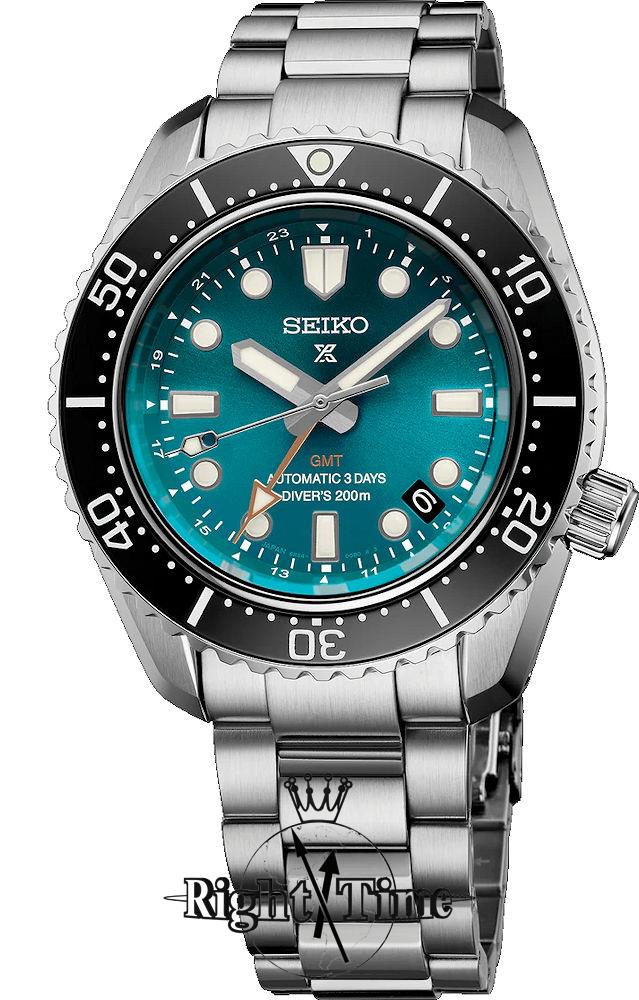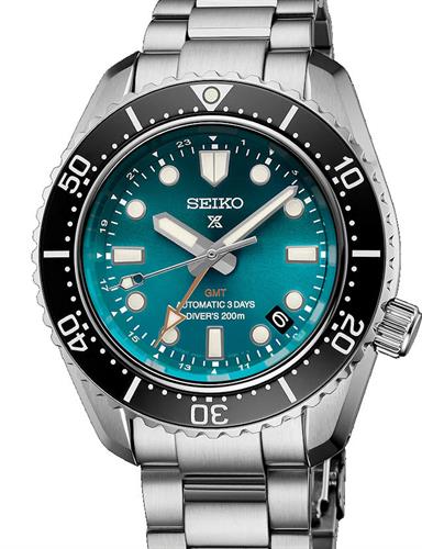 Seiko Prospex 1968 Heritage Diver`s GMT Save The Ocean Limited Edition of 500 pieces. Model SPB475. Japanese made Seiko Caliber 6R54 automatic movement. Stainless steel case and bracelet. Sapphire crystal with anti-reflective coating. Turquoise color dial with LumiBrite filled luminous hands and markers. Dive rated to 200 meters water resistant.