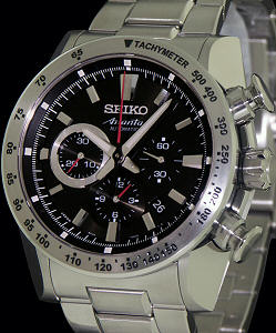 Seiko Ananta automatic chronograph. Model SRQ003. Seiko Japan automatic chronograph movement Cal. 8R28 with 34 jewels. Stainless steel case with tachymeter scale on steel bezel, sapphire crystal, black dial with silver color sub-dial, stainless steel bracelet
