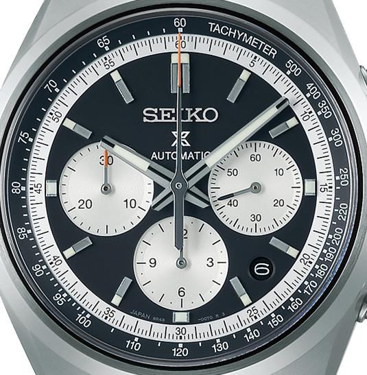 Seiko Prospex Speedtimer chrono model SRQ049. Solid stainless steel case and bracelet. Charcoal-gray dial with white contrasting sub-dials. LumiBrite filled hands and markers. Seiko Caliber 8R48 automatic movement with date and chronograph functions. Sapphire crystal with anti-glare coating. Water resistant to 100 meters. Limited Edition of 1000 pieces.