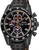 Seiko Sportura Solar Alarm Chronograph watch model SSC273. Stainless steel round black PVD plated case. Black color dial with date calendar. Black leather strap.