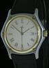 Silver color. Applied polished gold tone markers. Luminous hour markers/dots.
