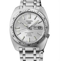 Seiko 5 Sports model SRPK91. Japanese SEIKO 4R36 automatic movement with day/date. Stainless steel case. Silver dial with LumiBrite filled hands/markers. Steel bracelet. Water resistant to 100 meters.