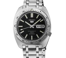Seiko 5 series 55th Anniversary Limited Edition model SRPK17. Re-creation of the original 5 series Seiko in 1968. Powered by the trusted 4R36 automatic movement with day/date functions. Vintage style stainless steel case and bracelet with a domed hardlex mineral glass crystal. Black dial with LumiBrite filled hands and markers. Duo-directional 60 minute bezel. Water resistant to 10atm.