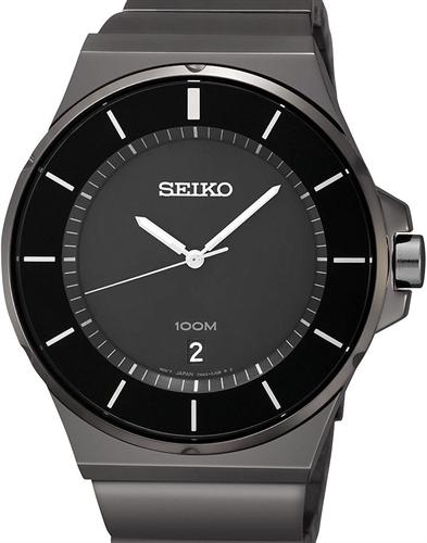 Seiko SGEG21 wrist watch from Seiko Men`s Sport Watches Collection. 100m Water Resistant. SEIKO Japanese Quartz movement with Date calendar. Stainless steel black ion plated case and bracelet. Black color dial.