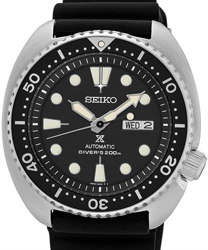 Seiko Prospex Automatic Diver watch model SRP777. Stainless steel case with rubber band. One-way rotating 0-60 bezel. Black color dial with day/date calendar and large luminous hands and markers. Water resistant to 200 meters.
