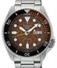 Seiko 5 series model SRPJ47. Seiko 4R36 automatic movement with day/date function. Solid stainless steel case and bracelet. Brown translucent dial with steel tone luminous hands and markers. Mineral glass crystal. Uni-directional bezel with brown/black 60 minute insert. Water resistant to 100 meters.