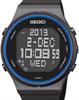Seiko Solar Compass Alarm Chronograph watch model SSC093. Stainless steel round case with bracelet. Black color dial yellow hands and markers. Date calendar.