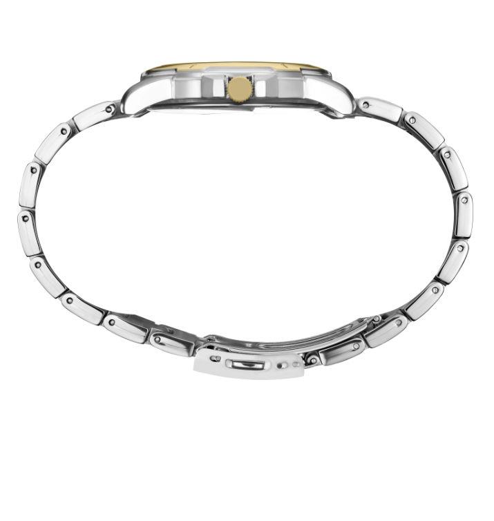 Solid Stainless steel. Combination satin/polished finish. Gold electroplated accents.