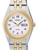 Seiko quartz solar powered dress watch model SUT116. Stainless steel 2-tone case with bracelet. White dial with day/date and Arabic numerals