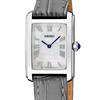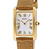 Seiko watch model SWR082 from Seiko Essentials Collection. Rose gold plated stainless steel case, red Mother-of-Pearl dial. Brown leather strap. 50 meters water resistant