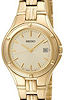 Seiko Sporty Dress quartz watch model SXDA92. Stainless steel gold-tone round case with bracelet. Champaign color dial